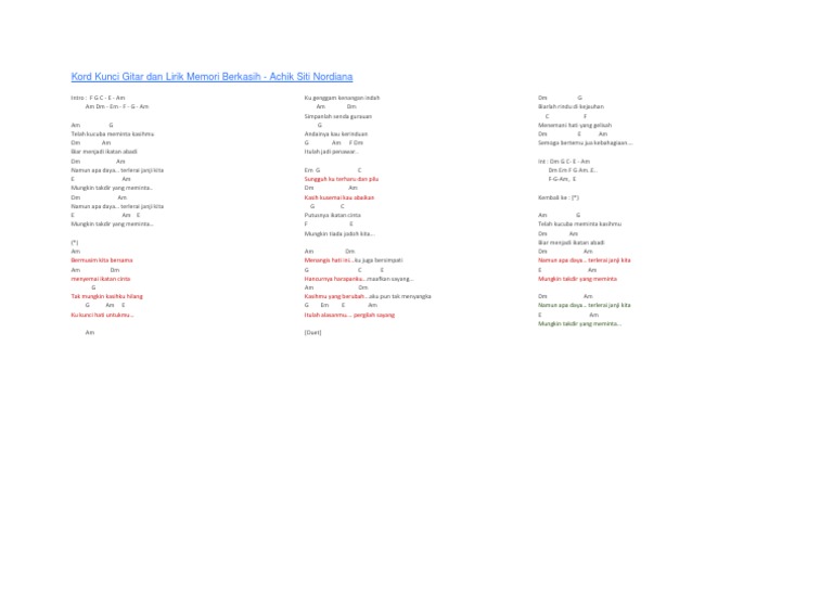 Lirik Lagu Dan Kunci Chord Gitar Memori Berkasih Versi