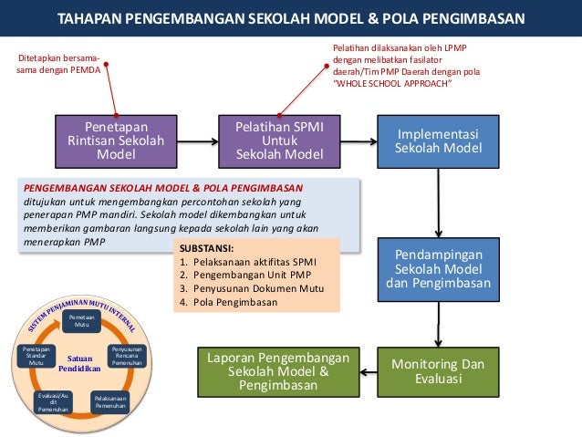Sosialisasi spmi dan pernyataan komitmen. Sekolah dapat memiliki data dasar yang akurat sebagai dasar untuk pengembangan dan peningkatan di masa mendatang. Secara umum tujuan dari pengembangan sekolah model dan pola pengimbasan adalah meningkatkan mutu pendidikan sesuai dengan standar nasional jadwal pendampingan sekolah model. Rekomendasi dan saran bagi sekolah : Pengembangan sekolah model dan pengimbasannya adalah meningkatkan mutu pendidikan sesuai dengan standar nasional pendidikan serta mencipt.