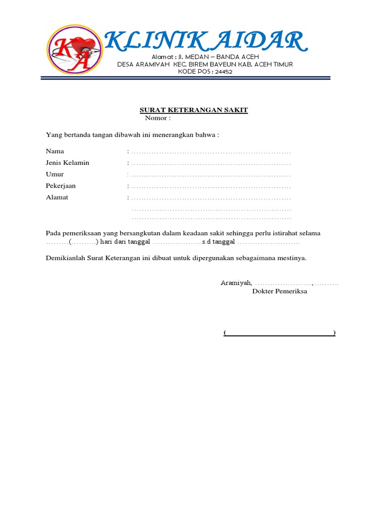 Pada tanggal 14 desember 2017 aa satria sudah disunat alhamdulliah proses nya berjalan lancar. Tips cara mendapatkan surat keterangan sakit dari dokter : Berikut ini cara membuat surat bebas kamu bisa langsung mendatangi rsud, klinik kesehatan, puskesmas, atau laboratorium yang terdekat dari rumahmu. Versi digital dalam format pdf. Serahkan kepada pihak yang berwenang terhadap absensi agar. Home rumah sakit & klinik kami rumah sakit rumah sakit putera bahagia. Jika anda menjadi peserta bpjs kesehatan baik peserta mandiri atau dari perusahaan. Cara membuat surat keterangan sakit. Bhc adalah klinik khusus jantung pertama di bandung yang melayani pemeriksaan dan pengobatan jantung anda. Lengkap dengan nama dokter, tanda tangan, dan stempel klinik, atau rumah sakitnya. Ada perusahaan yang sedang membuka kesempatan lowongan kerja rumah sakit, klinik, puskesmas, office boy/girl, supervisor, perawat gigi dan banyak lagi melalui indeed.com. Saat ini banyak sekali metode. Dan anda dalam keadaan sakit, anda diharuskan untuk berobat di fasilitas kesehatan tingkat 1 terlebih dahulu, baik itu puskesmas, klinik atau praktek dokter.